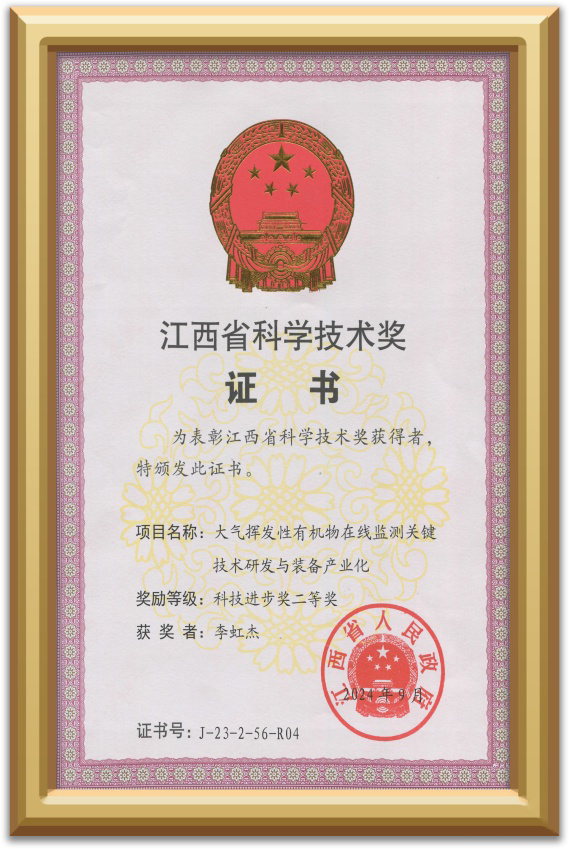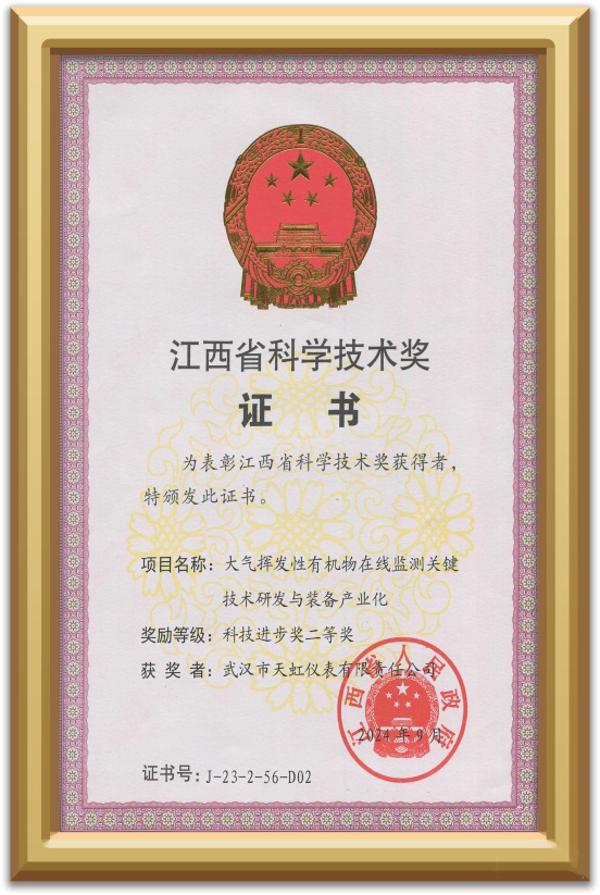 武漢市天虹儀表有限責(zé)任公司大氣揮發(fā)性有機(jī)物在線監(jiān)測關(guān)鍵技術(shù)研發(fā)與裝備產(chǎn)業(yè)化項(xiàng)目榮獲江西省科技進(jìn)步獎二等獎;