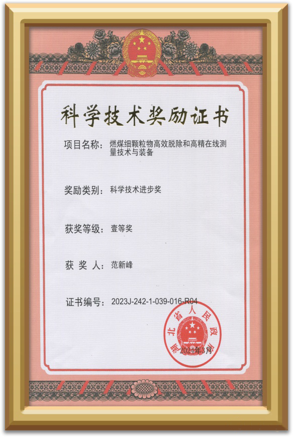 研發(fā)副總范新峰榮獲燃煤細(xì)顆粒物高效脫除和高精在線測量技術(shù)與裝備個人科技進(jìn)步獎一等獎。