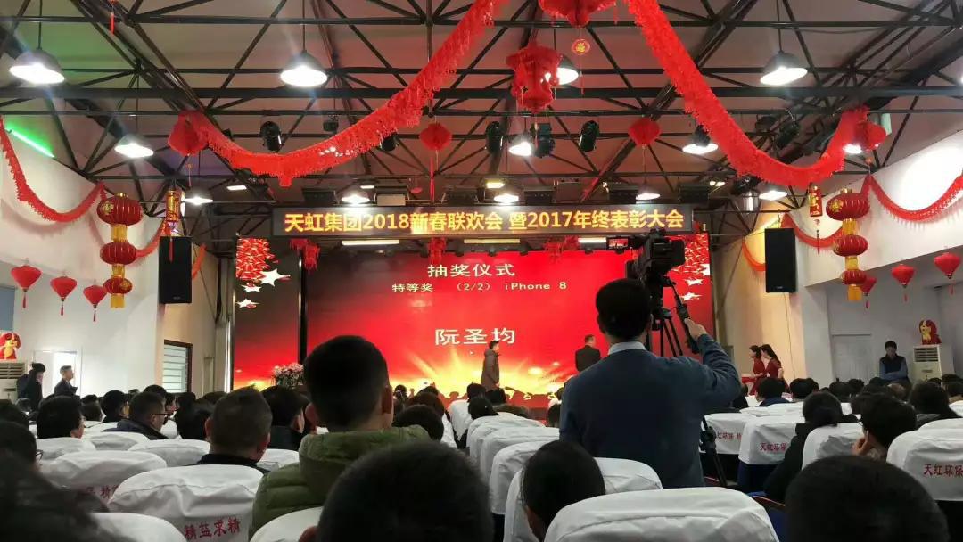 年會接近尾聲,武漢天虹董事長李虹杰先生做總結性致辭。李總表示,武漢天虹自成立以來,經歷了風風雨雨,大浪淘沙,通過多年的努力,企業(yè)不斷發(fā)展壯大,業(yè)務蒸蒸日上。天虹在過去的一年中在產品研發(fā)和市場開拓領域屢創(chuàng)佳績。武漢天虹一直注重技術創(chuàng)新,以高精尖的產品服務客戶;以客戶滿意為訴求,不斷加強自身服務能力;以人為本,不斷為員工謀福利,企業(yè)形象不斷提高。希望武漢天虹人在2018年繼續(xù)發(fā)揚專注、精進、誠信、實干的天虹精神,創(chuàng)造天虹更輝煌的明天。最后,李總祝全體員工狗年里吉祥如意,闔家歡樂!